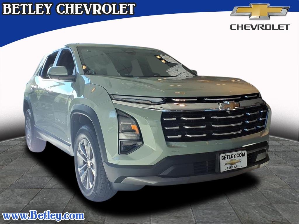 This 2025 Chevrolet Equinox LT is a state-of-the-art vehicle with low mileage and a 1.5 liter 4 cylinder engine, turbocharged. It has a cacti green gvr exterior and a black ekv interior, making it both stylish and practical. It also features touch screen display, Bluetooth audio connection, blind spot sensor, hill start assist, part time four wheel drive, navigation system with voice recognition, navigation with touch screen display, Bluetooth phone connectivity, and more. This car is sure to turn heads on the road! Contact Details: Betley Chevrolet, 50 N. Main Street, Derry, NH, 03038, sales@betley.com, 8886063324.