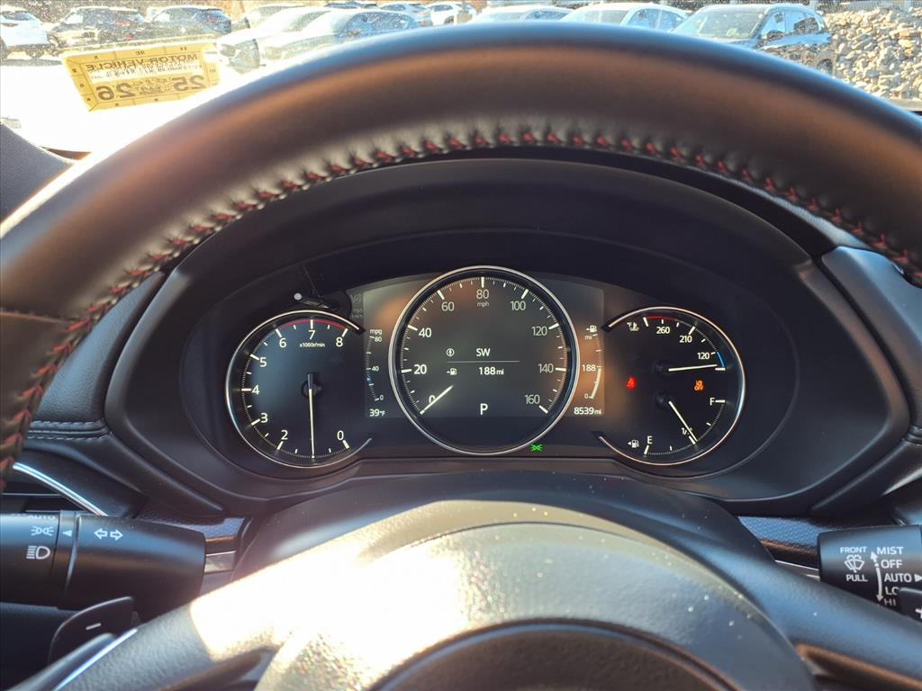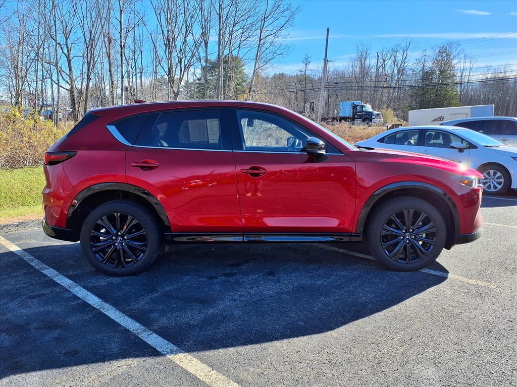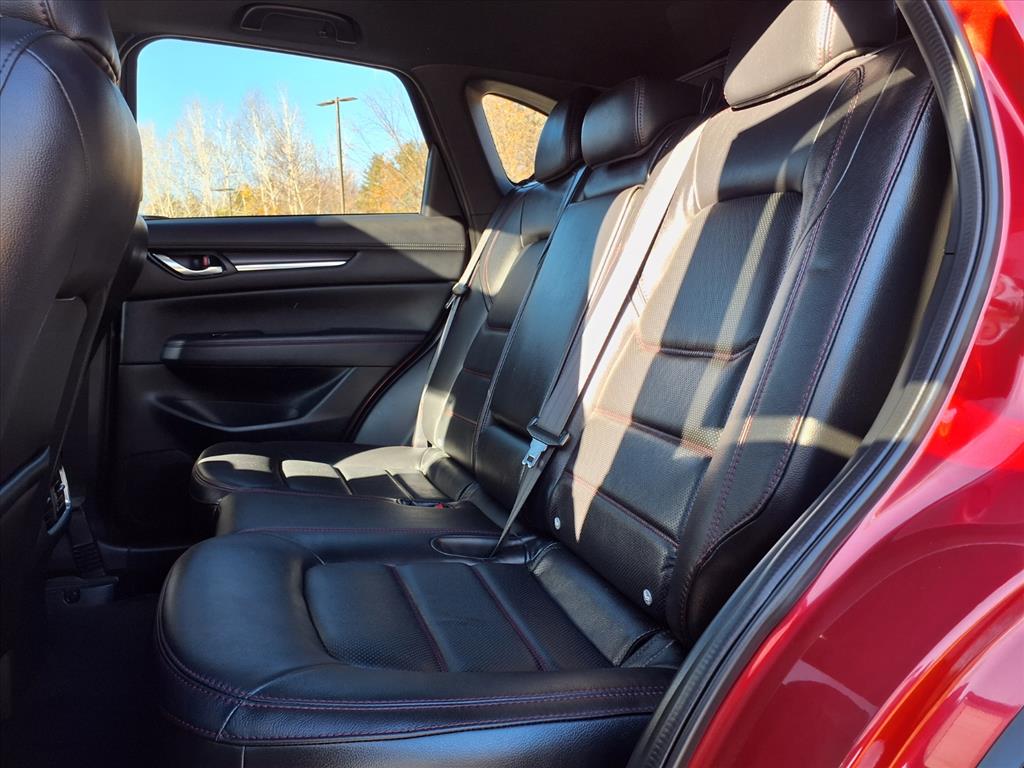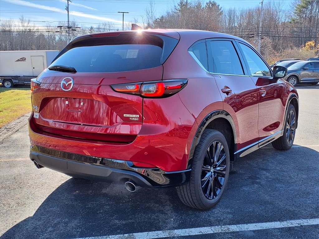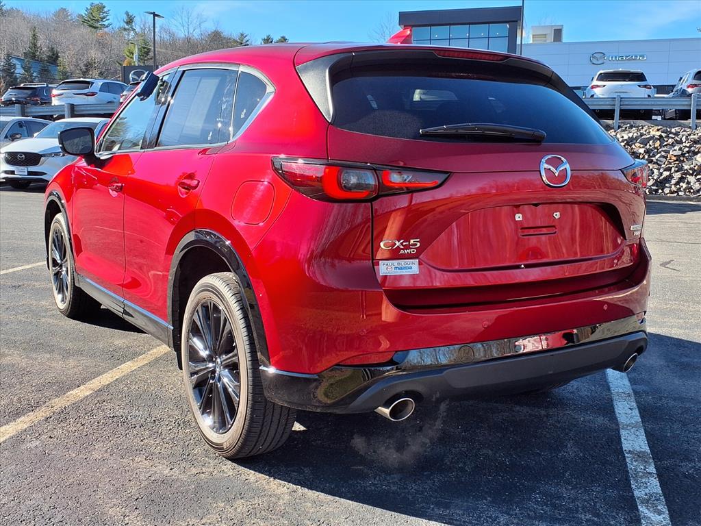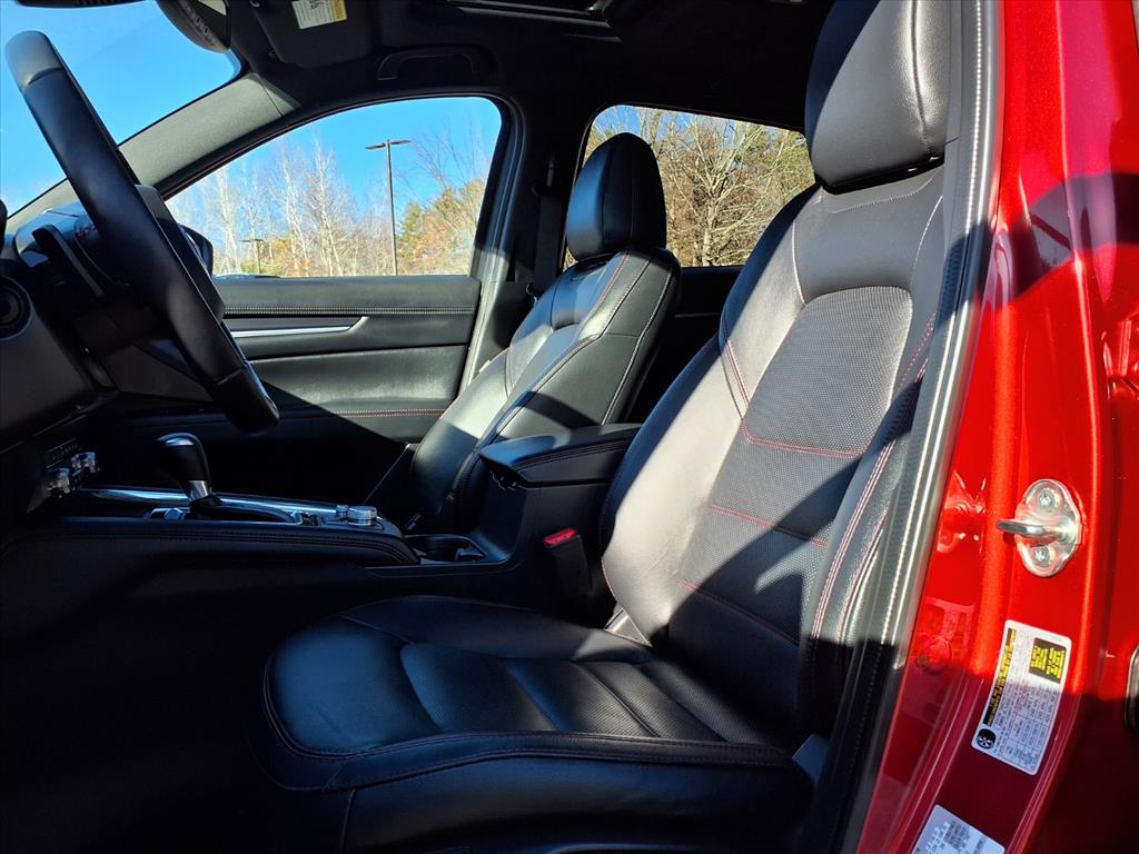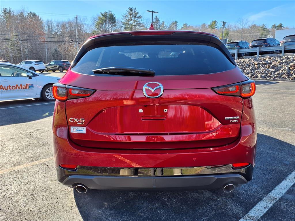 Clean CARFAX. Certified. Soul Red Crystal Metallic 2025 Mazda CX-5 2.5 Turbo Premium AWD 6-Speed Automatic 2.5L I4 10 Speakers, 4-Wheel Disc Brakes, ABS brakes, Air Conditioning, All-Weather Floor Mats, Alloy wheels, AM/FM radio: SiriusXM, AppLink/Apple CarPlay and Android Auto, Auto High-beam Headlights, Auto-dimming Rear-View mirror, Automatic temperature control, Black Lug Nuts & Black Wheel Locks, Brake assist, Bumpers: body-color, Delay-off headlights, Driver door bin, Driver vanity mirror, Dual front impact airbags, Dual front side impact airbags, E911 Automatic Emergency Notification, Electronic Stability Control, Emergency communication system: MAZDA CONNECT, Four wheel independent suspension, Front anti-roll bar, Front Bucket Seats, Front Center Armrest w/Storage, Front dual zone A/C, Front reading lights, Fully automatic headlights, Garage door transmitter: HomeLink, Heads-Up Display, Heated door mirrors, Heated front seats, Heated rear seats, Heated steering wheel, Heated/Ventilated Front Bucket Seats, Illuminated entry, Infotainment System Voice Command, Interior Lighting Kit, Leather Seat Trim, Leather Shift Knob, Leather steering wheel, Low tire pressure warning, Memory seat, Multifunction Commander Control, Occupant sensing airbag, Outside temperature display, Overhead airbag, Overhead console, Pandora, Panic alarm, Passenger door bin, Passenger vanity mirror, Power door mirrors, Power driver seat, Power Liftgate, Power moonroof, Power passenger seat, Power steering, Power windows, Radio Broadcast Data System Program Information, Radio data system, Radio: AM/FM/HD Audio System, Rain sensing wipers, Rear anti-roll bar, Rear reading lights, Rear seat center armrest, Rear window defroster, Rear window wiper, Remote keyless entry, Retractable Cargo Cover, SMS Text Msg Audio Delivery & Reply, Soul Red Crystal Metallic Paint, Speed control, Speed-sensing steering, Split folding rear seat, Spoiler, Steering wheel mounted audio controls, Tachometer, Telescoping steering wheel, Tilt steering wheel, Traction control, Trip computer, Turn signal indicator mirrors, Variably intermittent wipers, Ventilated front seats, and Wheels: 19 x 7J Aluminum Alloy.