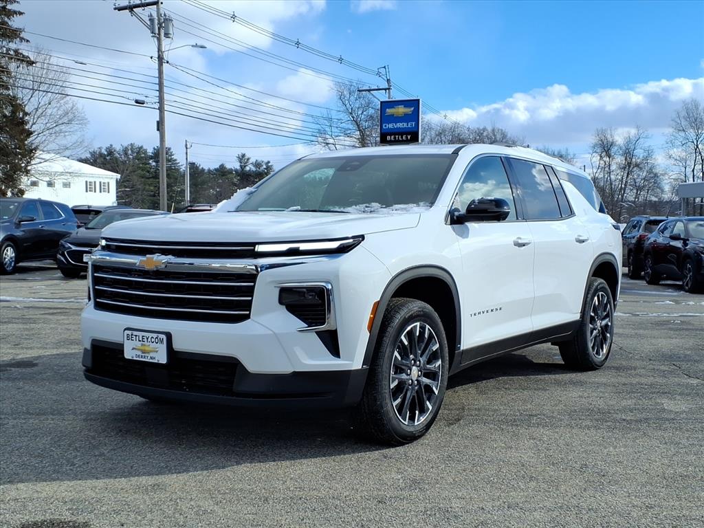 The 2026 Chevrolet Traverse LT is a 4x4 SUV that is sure to turn heads. Boasting a 2.5 liter 4 cylinder turbocharged engine, this vehicle has a summit white gaz exterior and jet black hqb interior. It has a crash test rating of 5 out of 5 stars and features such as a touch screen display, Bluetooth audio connection, blind spot sensor, hill start assist, part time four wheel drive, navigation system with voice recognition, and Bluetooth phone connectivity. With all these features combined, this car is sure to make any driver feel safe and secure on the road. Contact Details: Betley Chevrolet, 50 N. Main Street, Derry, NH, 03038, sales@betley.com, 8886063324.