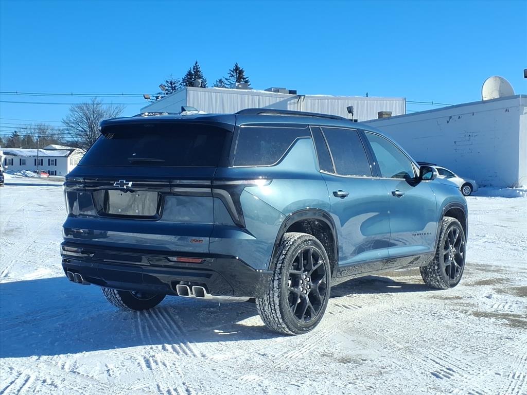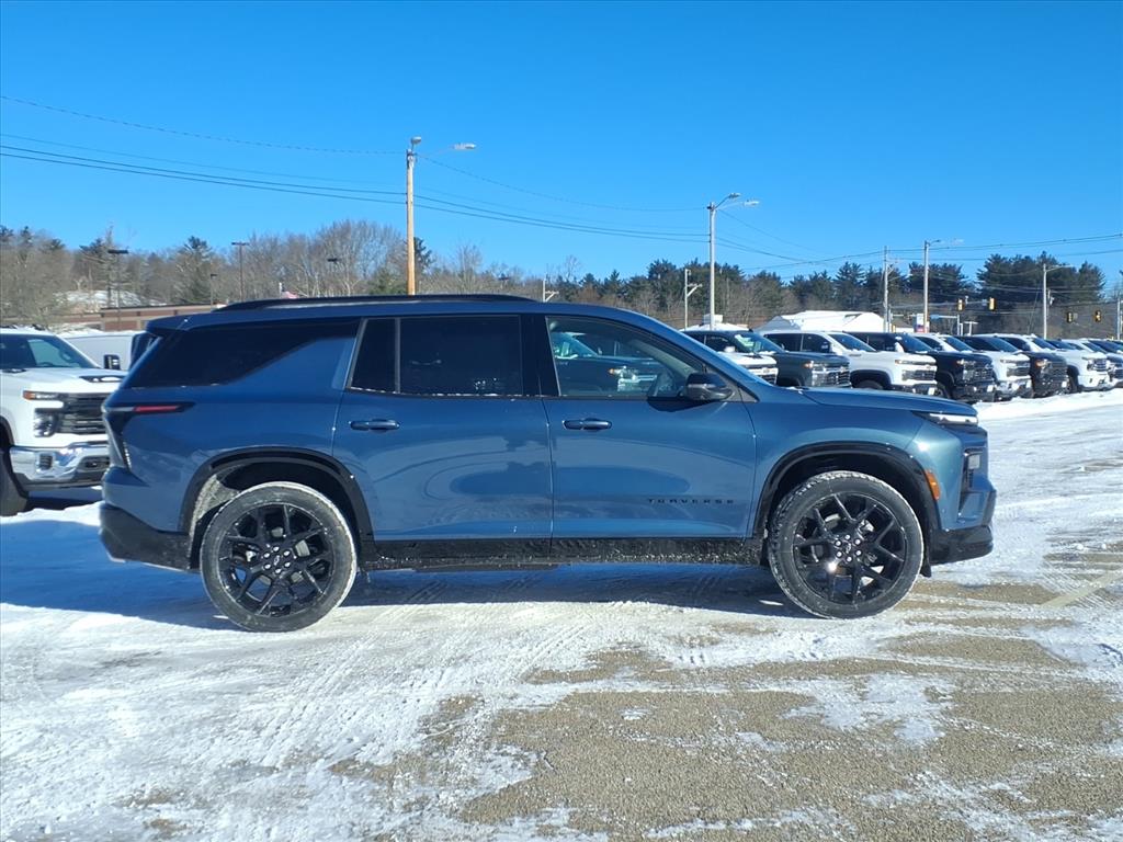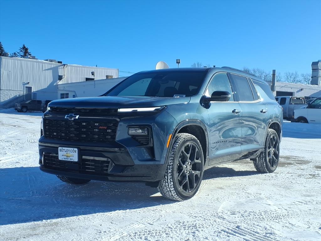 The 2026 Chevrolet Traverse RS is a state-of-the-art 4x4 SUV that has been designed to provide the ultimate in luxury and performance. Boasting a 2.5 liter 4 cylinder turbocharged engine, this vehicle has been designed to deliver an impressive 5 out of 5 stars in crash test ratings, making it one of the safest cars on the road today. The exterior of this car is made of a lakeshore blue metallic colour, while the interior is finished in a luxurious black leather-trimmed design. The vehicle also features a touch screen display, Bluetooth audio connection, blind spot sensor, hill start assist, part time four wheel drive, navigation system with voice recognition, and Bluetooth phone connectivity for added convenience. With all these features combined, the 2026 Chevrolet Traverse RS is sure to be an ideal choice for anyone looking for a reliable and luxurious car. Contact Details: Betley Chevrolet, 50 N. Main Street, Derry, NH, 03038, sales@betley.com, 8886063324.